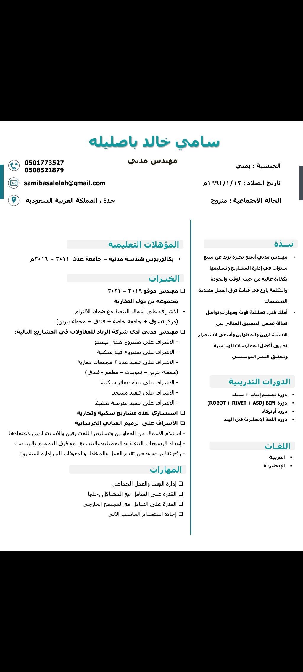 مهندس مدني خبرة 7 سنوات في مجال التعمير والانشاء خبرة في إدارة المشاريع والعماله وتنفيذ المخططات حسب التصاميم ب أعلى درجات الجودة والاتقان حيث قمت بالاشراف على عدة مشاريع منها فنادق ومساجد ومنشاءت سكنية (فلل - عمارات)