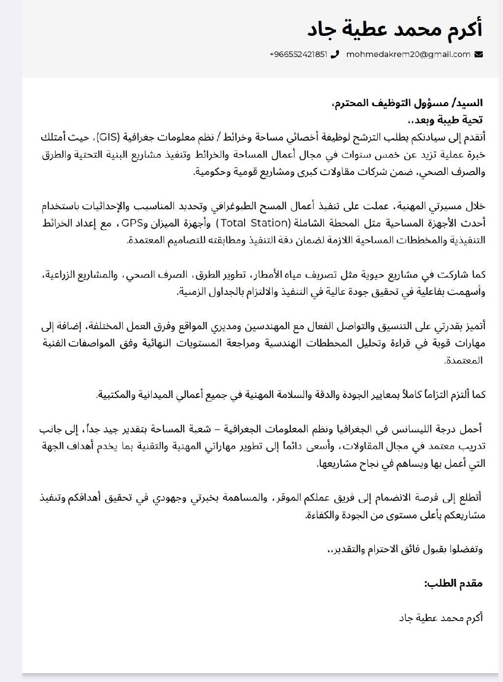 مساح عام خبرة بأعمال الصرف الصحي والبنيه والطرق خبرة 5 سنوات