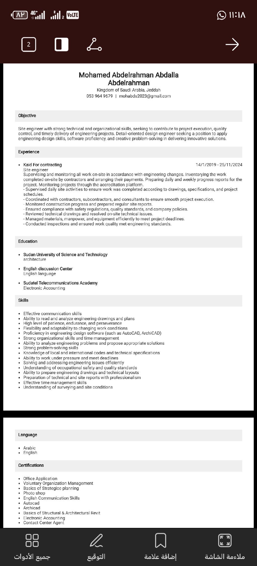 Site Engineer A highly motivated Site Engineer with 6 years of experience in supervising construction sites, managing daily site activities, and ensuring work is executed according to drawings, specifications, and safety standards. Strong experience in site supervision and coordination with consultants and contractors Ability to solve on - site problems and make effective decisions