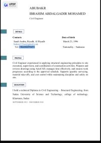 مهندس مدني ذو خبرة في تطبيق مبادئ الهندسة الانشائية في تنفيذ الأعمال بالموقع، والاشراف، وتنسيق الأنشطة الانشائية، حيث أقوم باعداد ومراجعة الرسومات باستخدام برنامج AutoCAD، وإدارة الوقت بكفاءة، وضمان سير العمل وفق الجدول الزمني المعتمد. كما أقوم بأعمال حصر الكميات، وحساب كميات المواد، وضبط التكاليف، مع الحفاظ على الانضباط ومتطلبات السلامة في الموقع