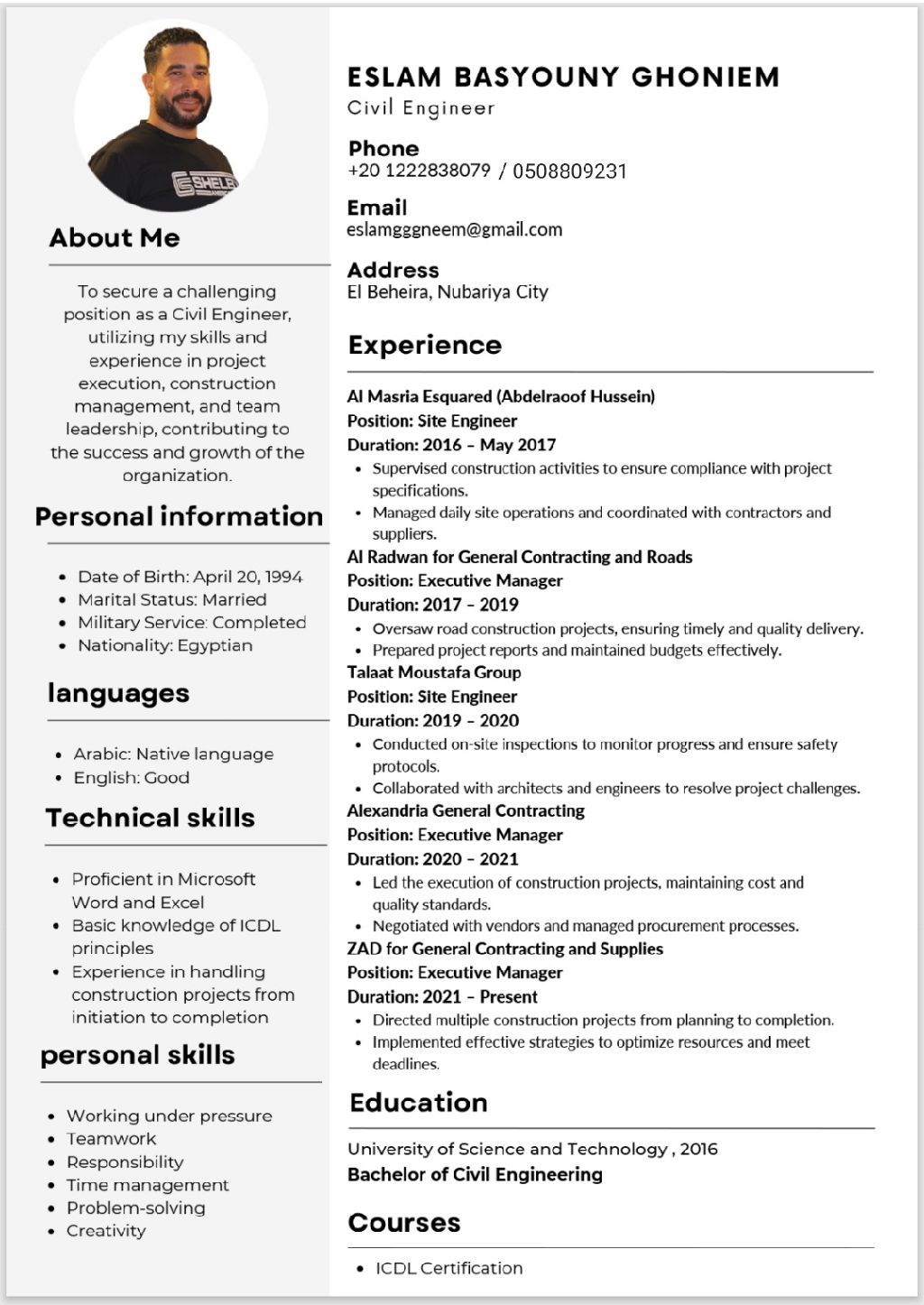 مشرف مدني وعمارة خبرة 10 سنوات متابعة الأعمال متابعة الموقع تنفيذ المخططات