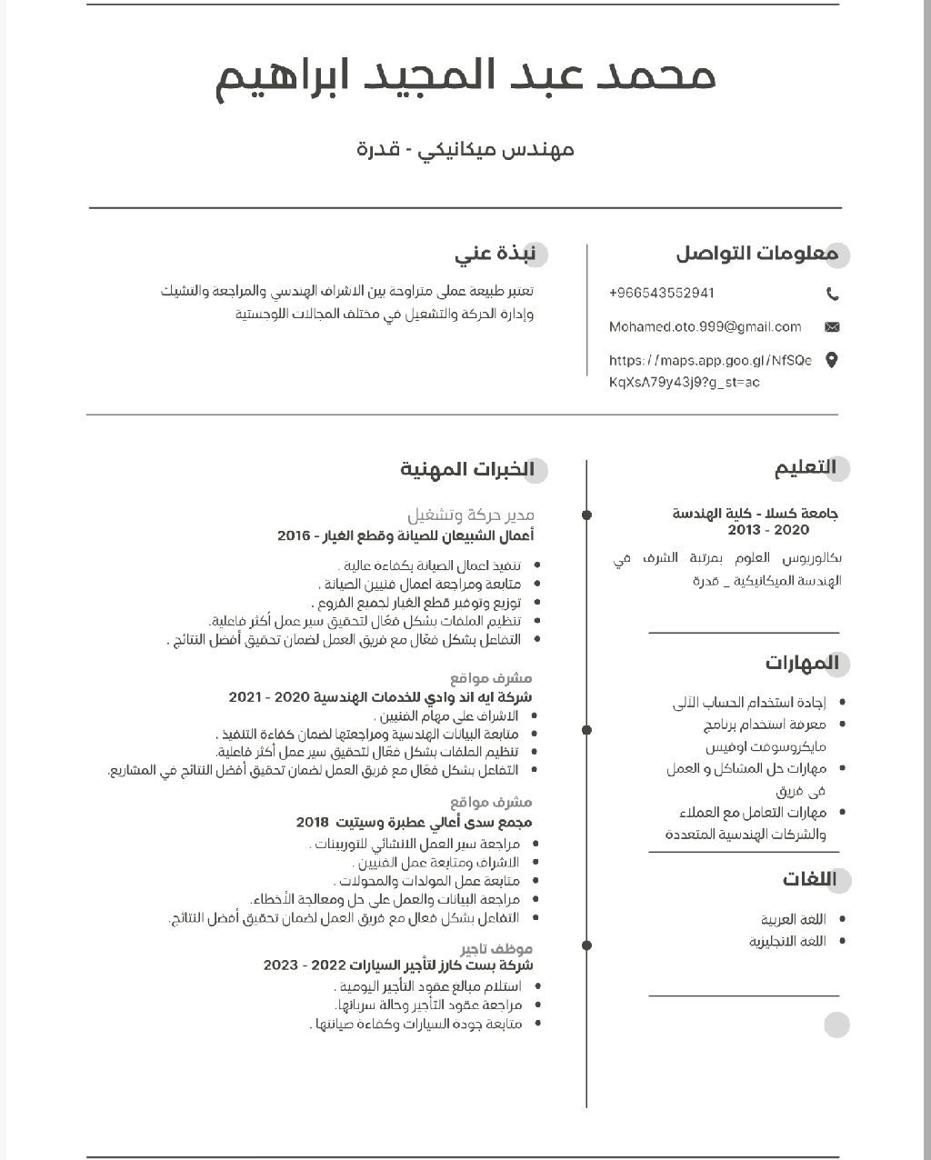 المهندس. محمد عبد المجيد إبراهيم. خبرة في المجال الاداري + المجال اللوجستي + مجال إدارة وتأجير السيارات + مدير حركة وتشغيل + مساعد اداري + مدير فنيين