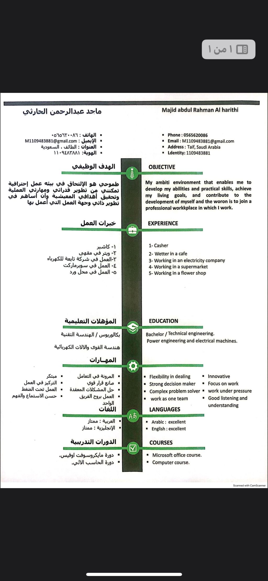 ماجد عبد الرحمان الحارثي ابحث عن وظيفة شاغرة في قسم الكهرباء حاصل هندسة كهرباء بكولوريوس سعودي الجنسية