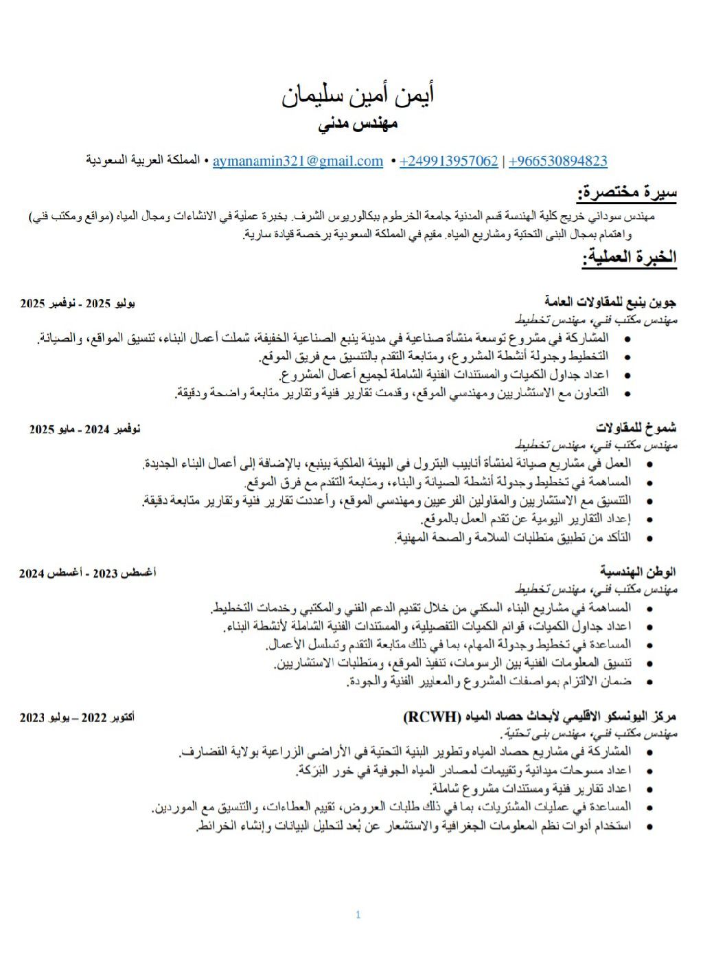 Civil Engineer - Technical office/ Planning. A Sudanese Engineer in Saudi Arabia, with a driving license and willing to relocate. I have over three years of professional experience in Technical Office Works, Site Management, and Project Planning. Proficient in engineering software, including AutoCAD, Primavera P6, and Microsoft Office. I have courses including OSHA, Planning, and Project management