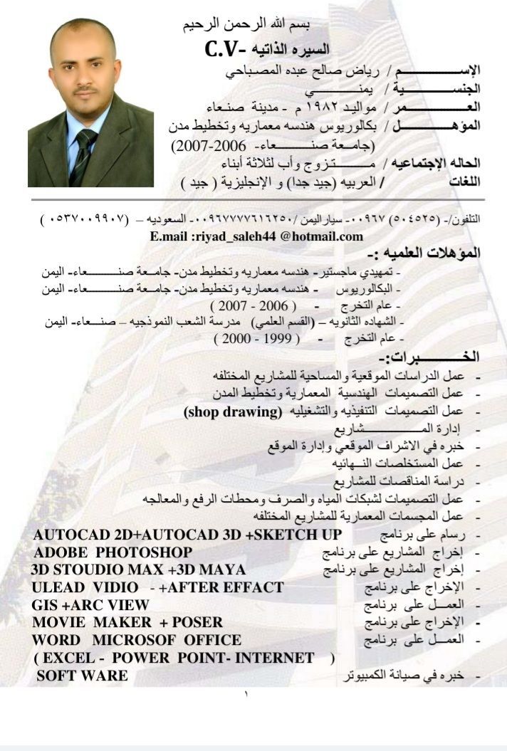 مهندس معماري يمني خيرة 15 سنة تصاميم هندسي اشراف انشائي وتشطيبات. حساب كميات. ادارة الموقع اجادة للبرامج الهندسية اوتوكاد ثري دي ماكس عضو في هيئة المهندسين السعوديين مستعد للعمل في أي مدينة