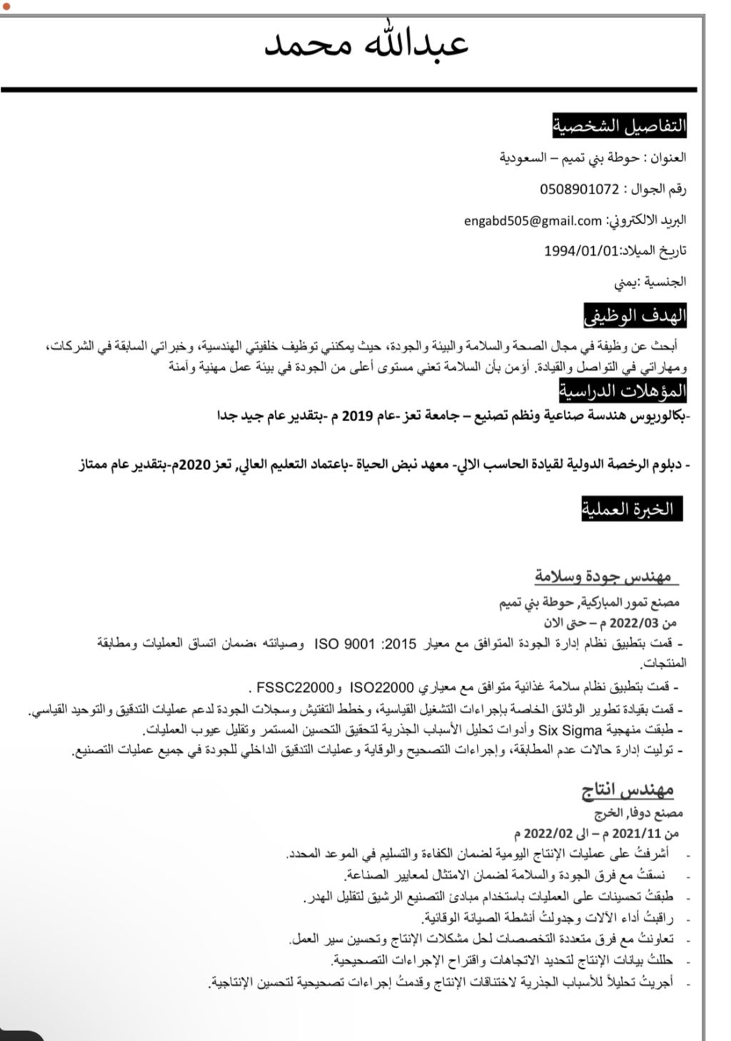 ابحث عن وظيفة في مجال الصحة والسلامة والبيئة والجودة، حيث يمكنني توظيف خلفيتي الهندسية، وخبراتي السابقة في الشركات، ومهاراتي في التواصل والقيادة. أؤمن بأن السلامة تعني مستوى أعلى من الجودة في بيئة عمل مهنية وآمنة