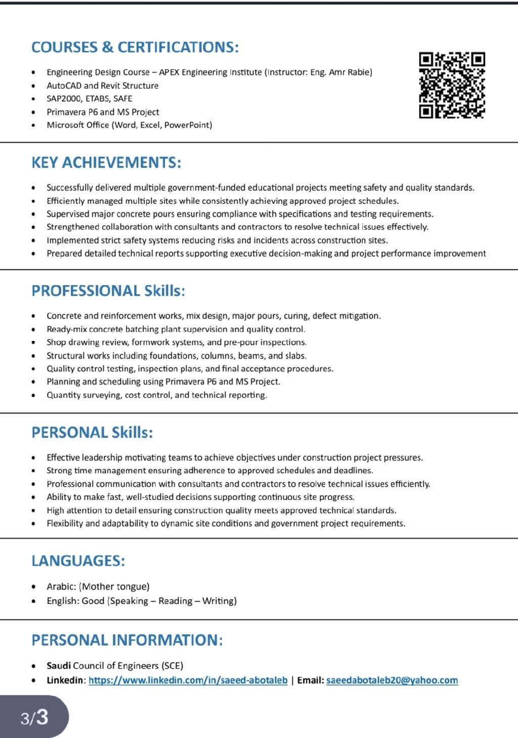 Dear Hiring Manager, I am a Senior Civil Site Engineer with over seven years of experience in structural, concrete, and site supervision works across Saudi Arabia and Egypt. I am eager to contribute my technical expertise and leadership skills to your organization and would welcome the opportunity for further discussion. Senior Civil Site Engineer (966)