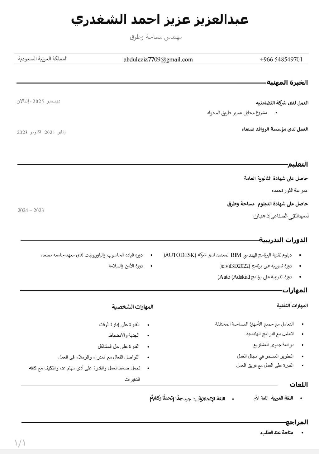 مهندس مساح عام خبرة ثلاث سنوات لديه القدرة التعامل مع جميع الاجهزة المساحية المختلفه حساب كميات التعامل مع برامج الكمبيوتر تحليل بيانات