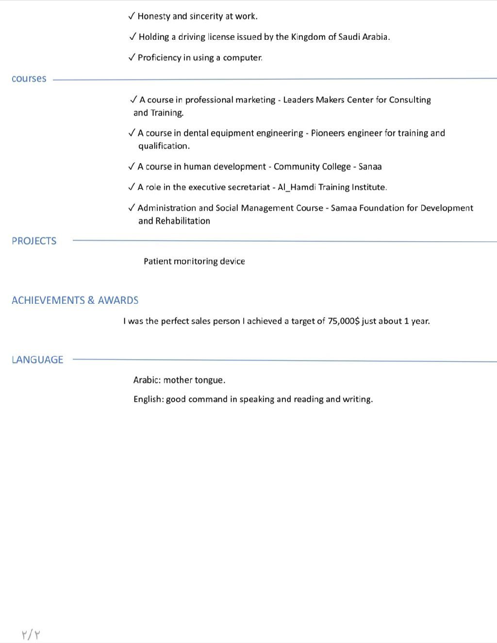 مهندس اجهزة طبية بكالوريوس خبرة ثلاث سنوات ابحث أن عمل في مجال الصيانة أو في مجال المبيعات أو أي شيء يخص تخصصي استهدف الشركات والمستشفيات وعندي رخصة سياقة وعندي سيارة إقامة سارية وقابلة لنقل مستعد أبا شر العمل بأي مكان في المملكة