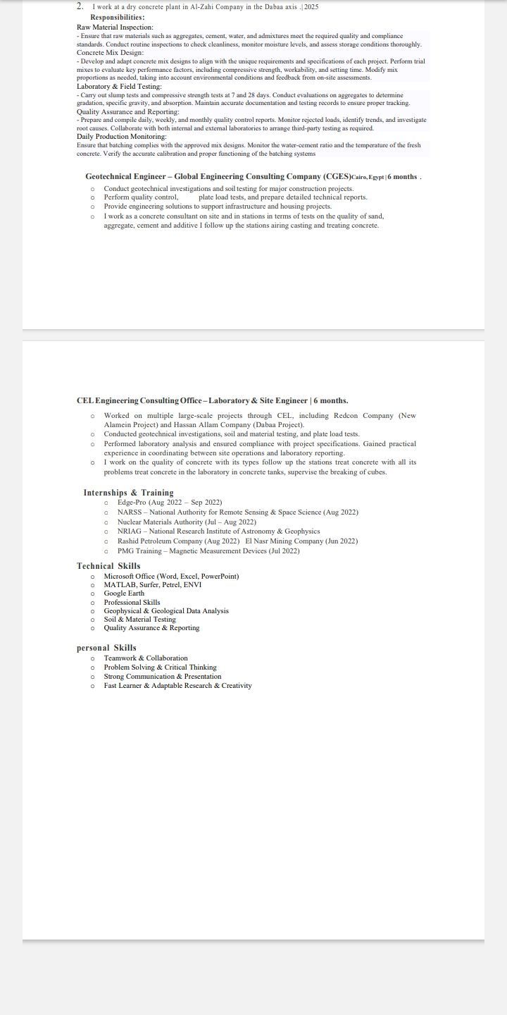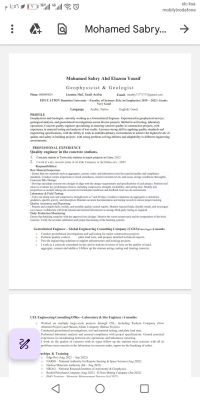 أنا جيولوجي وجيوفيزيائي عندي خبرة في مجال الجيوفيزياء وخبرة في التربة والخرسانة وحاليا في السعودية محتاج وظيفة في المجال