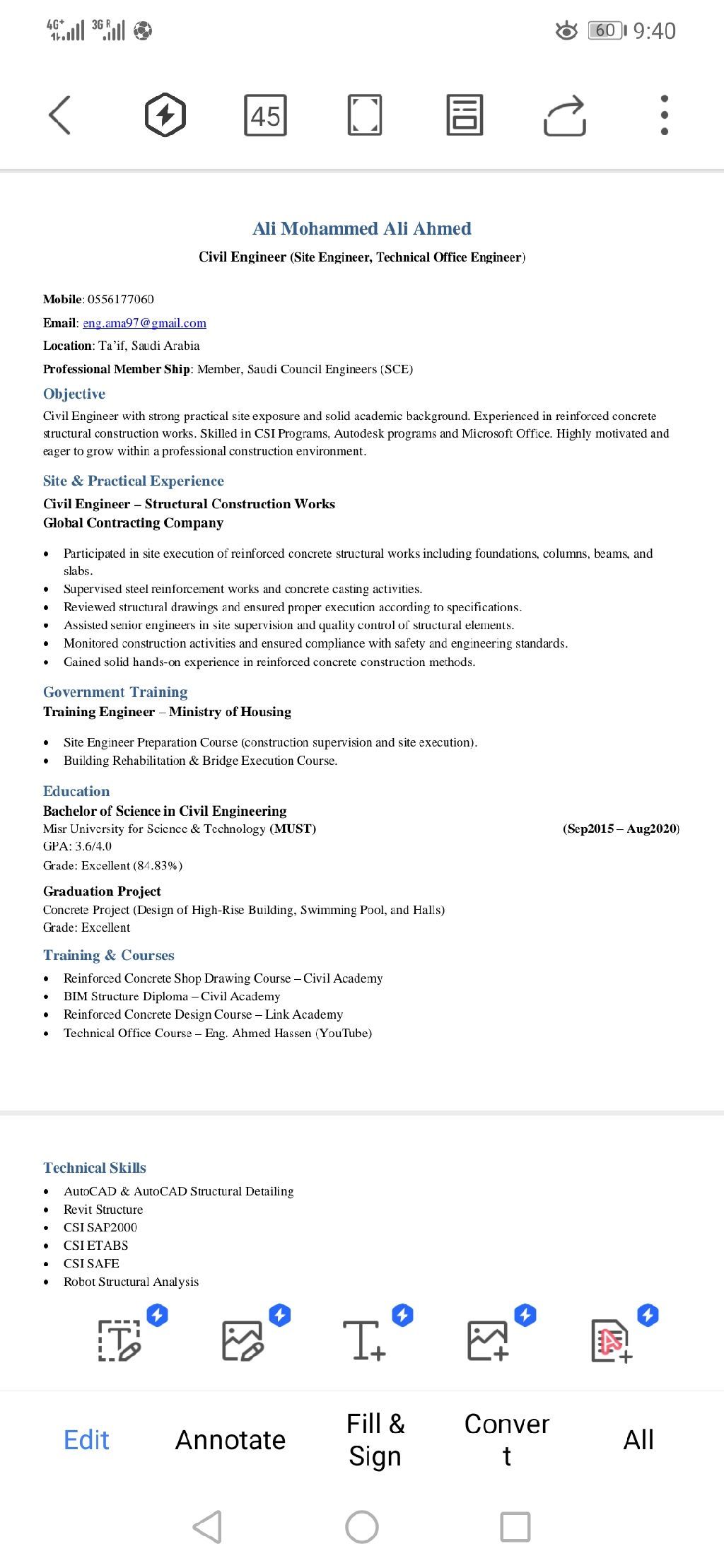 مهندس مدني خبرة 5 سنوات موقع ومكتب فني (برامج الأوفيس والكاد والريفيت وجميع برامج المكتب الفني) وما يشمله من حصر أعمال وعمل لوحات تنفيذية بالاضافة لدورات تصميم انشائي وبرامج التصميم، لغة انجليزية فوق المتوسط، ومهارات تواصل ممتازة لادارة الأعمال والتاسكات، متواجد في السعودية إقامة سارية، اشتراك الهيئة السعودية للمهندسين، جاهز للانضمام الفوري مقاولات أو مكاتب استشارية. للتواصل