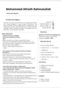 مهندس كهرباء حديث التخرج، حاصل على درجة البكالوريوس في الهندسة الكهربائية، لدي أساس علمي جيد ورغبة قوية في التعلم والتطور المهني. امتلك مهارات عالية في العمل الجماعي، والتواصل الفعال، والقدرة على تحمل ضغط العمل، وأسعى لاكتساب الخبرة العملية والمساهمة بفاعلية داخل بيئة عمل احترافية