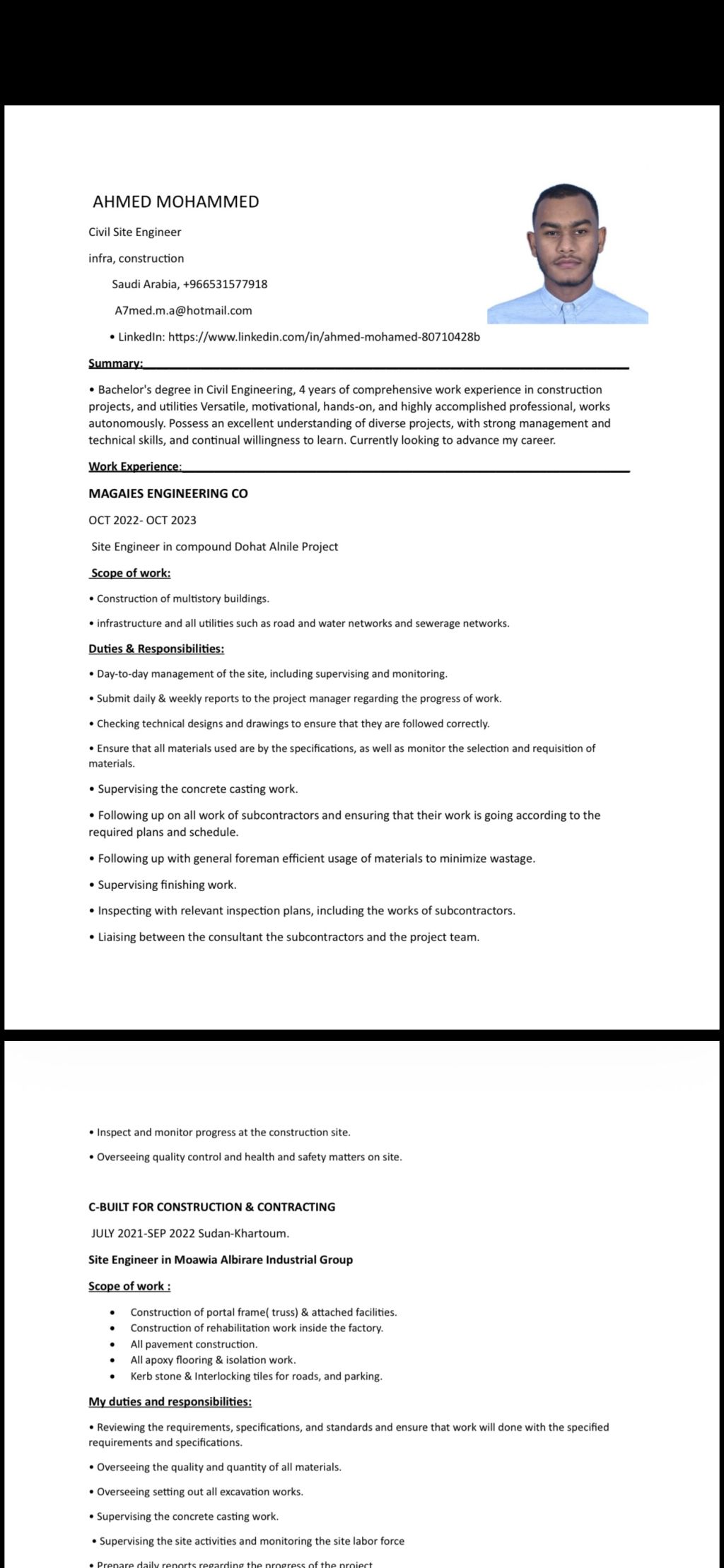 مهندس مدني سوداني في منطقة عسير جازان (مهندس موقع Site Engineer) خبرة في الاشراف على المواقع والتشطيبات يوجد رخصة قيادة