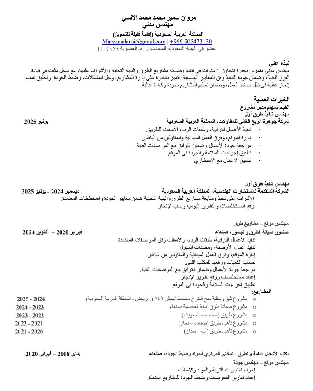 مهندس مدني طرق واسفلت موقع خبرة تتجاوز 9 سنوات في إدارة وتنفيذ أعمال الطرقات والاسفلت والبنية التحتية وطبقات الرصف والاشراف عليها وادارة الموقع والمعدات مسجل لدى الهيئة السعودية للمهندسين إقامة سارية قابلة للتحويل ورخصة قيادة متواجد في الرياض قابل للعمل في أي منطقة