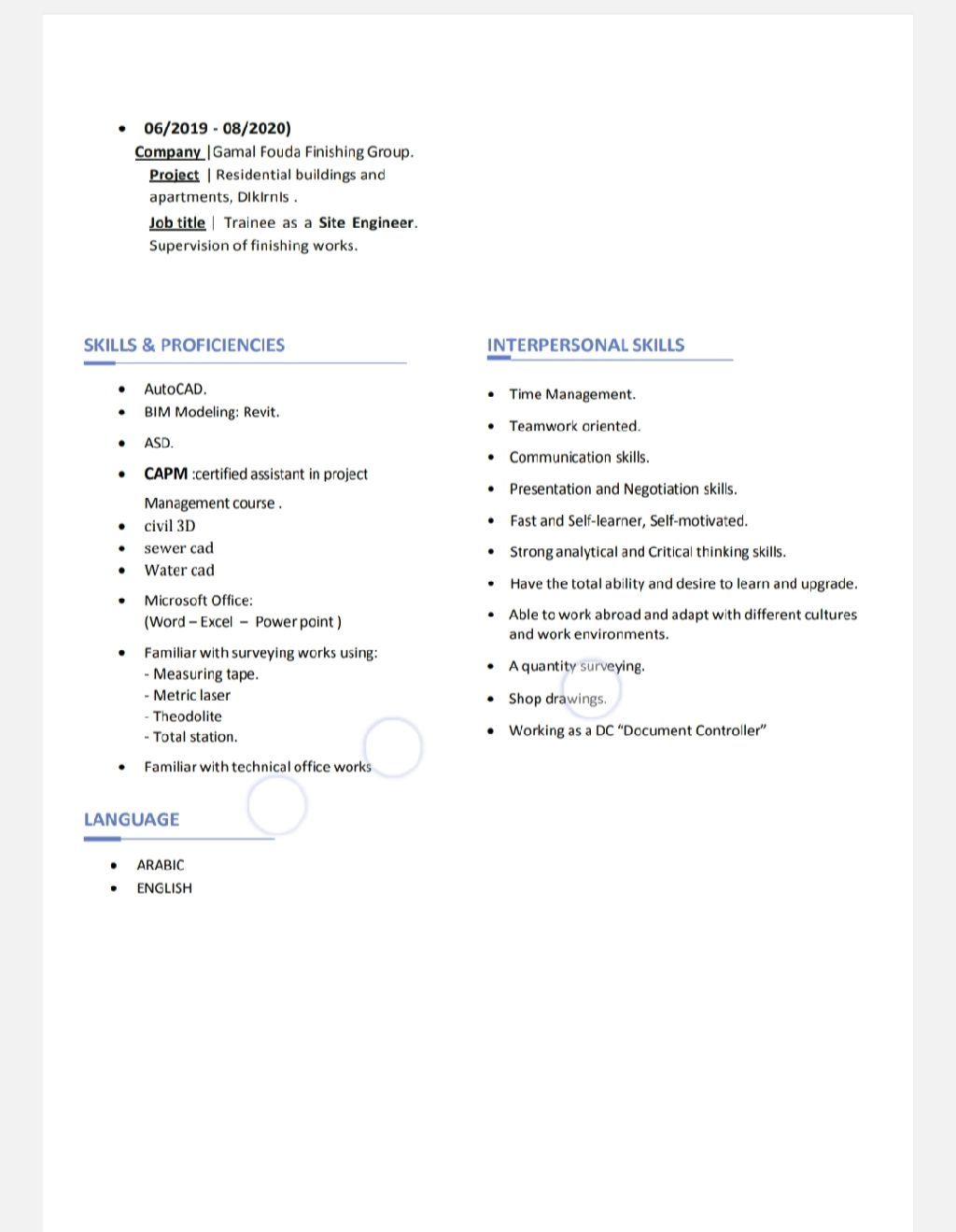 بكالوريوس الهندسة المدنيه جامعة الزقازيق، وقد اكتسبت خبرة عملية من خلال عملي بشركة ريست جروب في القاهرة حيث تشطيب فلل بالشيخ زايد وبشركة وايت لاين تابعه لشركة صن رايز من خلال وجودي وإشرافي الموقع وتنفيذ منتجع سياحي في مرسى علم انشاءات وتشطيبات وشركة ENC في مصر في تصميم شبكات من خلال العمل مع تيم وتصميم المخططات وحاليا شركة دار الانشاء في الرياض تنفيذ مجمع علاج طبيعي تابع لسليمان الحبيب في الريان