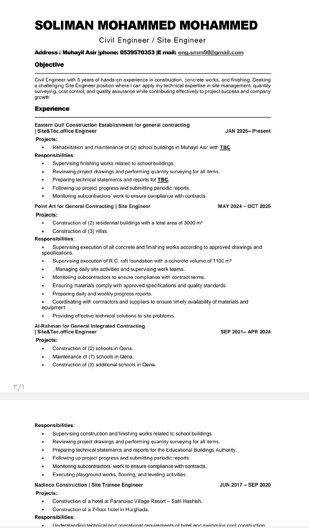 مهندس مدني (تنفيذ + مكتب فني) خبرة 5 سنوات. في السعودية. اعمل حاليا بمحايل عسير. خريج 2021. جامعة قنا الحكوميه خبرة في تنفيذ الأعمال الخرسانية والتشطيبات