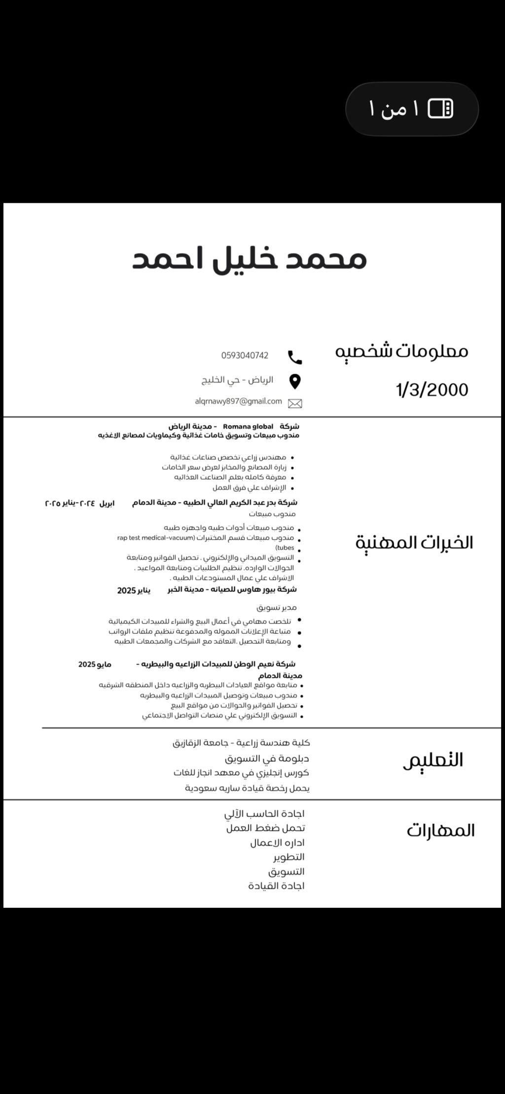 أنا مهندس زراعي اشتغلت في شركات مكافحة حشرات تسويق ومبيعات واشتغلت في شركة مواد غذائية مندوب مبيعات خامات غذائية واشتغلت في شركة طبية مندوب مبيعات للمستلزمات الطبية وحاليا بدور علي وظيفة متاحة