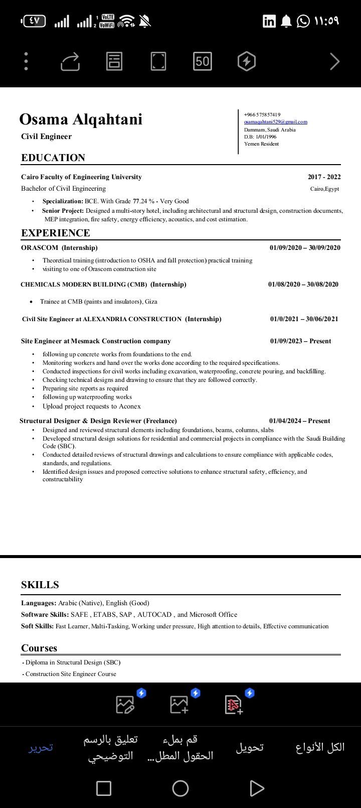 مهندس مدني خريج جامعة القاهرة خبرة أربع سنوات في مجال التنفيذ داخل السعودية ابحث عن فرصة عمل مناسبة متواجد حاليا في جدة