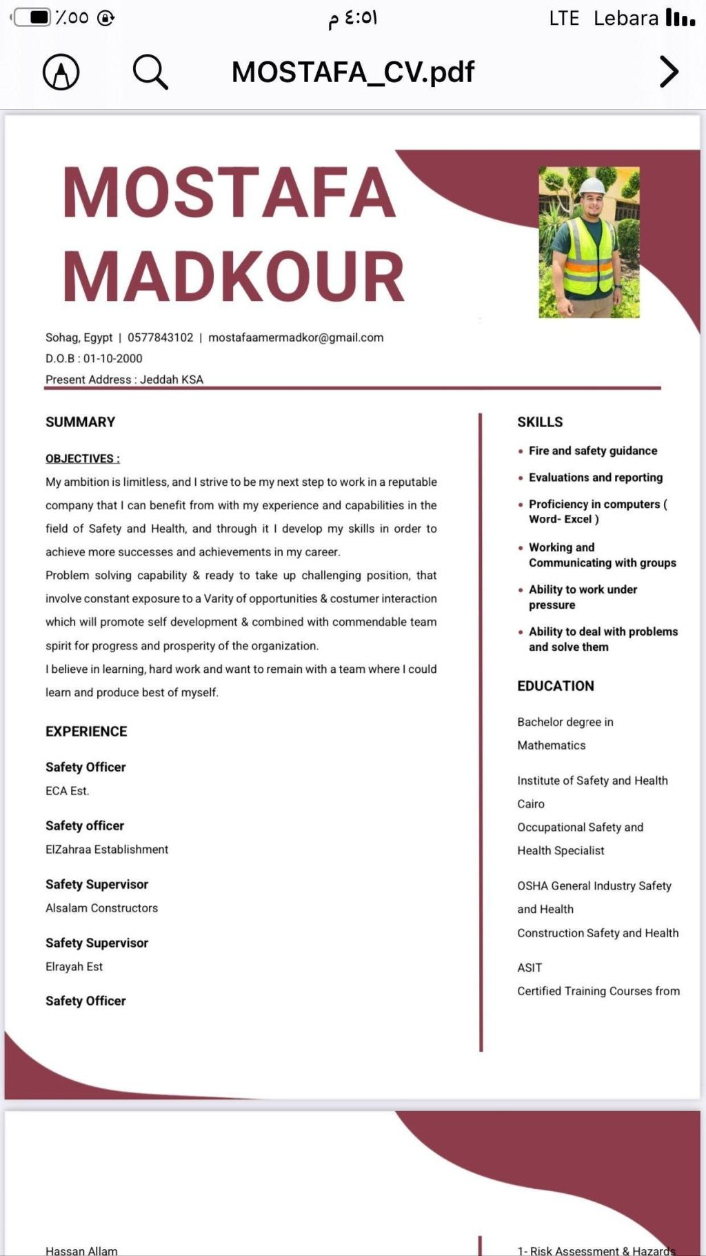ابحث عن وظيفة مشرف أمن وسلامة وصحة مهنية اجاد التعامل خبرة سنتين في المواقع الانشائية أجيد التعامل علي الحاسب الآلي وبرامج الأفيس وورد أكسيل أجيد التعامل مع المخاطر والحرائق سرعة اتخاذ القرار حاصل علي الاوشا الأمريكية وحاصل علي دوره تدريبية من الادارة الدولية للصحة والسلامة المهنية بالاضافة الى 14 شهادة معتمده + 2 كأردنيه حاصل علي بكالوريوس نظم المعلومات الادارية
