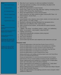 Power system, Lighting system, Load estimation, Cable sizing, Cable routing, Calculating voltage drop and short circuit, Load schedule، Layout, Earthing Calculation, Fire Alarm, CCTV, Shop Drawing, As - built