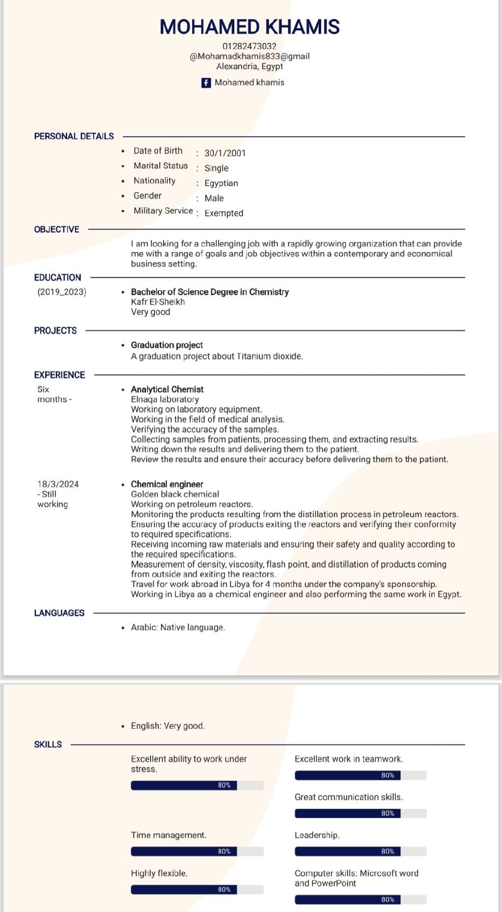 I am seeking a chemist position. I have experience in petroleum waste refining, chemical solvents, and automotive oils. I am looking for a job opportunity where I can utilize my skills and gain experience