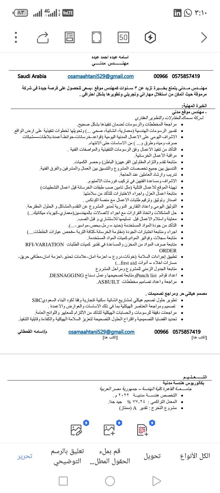 مهندس مدني خريج جامعة القاهرة خبرة أربع سنوات متاح للعمل حاليا