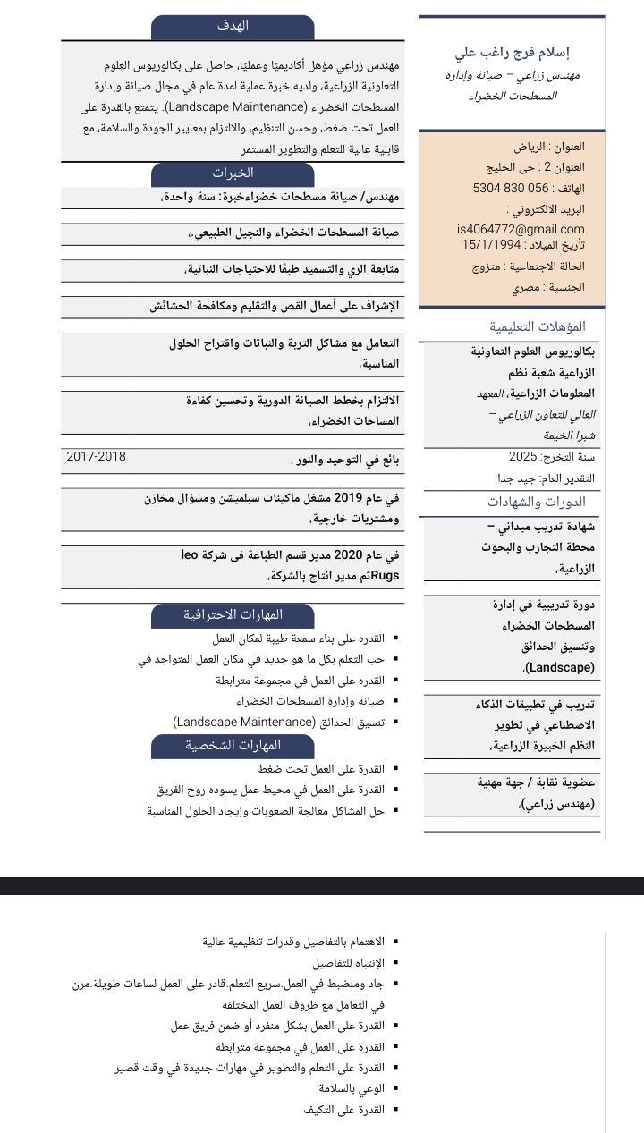 ابحث عن فرصة عمل مهندس زراعي حديث تخرج