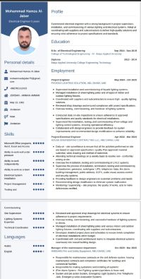 Electrical Engineer with 5 years of experience in the United Arab Emirates in electrical works and project supervision, seeking a suitable job opportunity. I have experience in site management, supervising electrical installations, and monitoring project execution according to specifications and standards. I also have experience in lighting systems and fire alarm and firefighting systems. I am cur