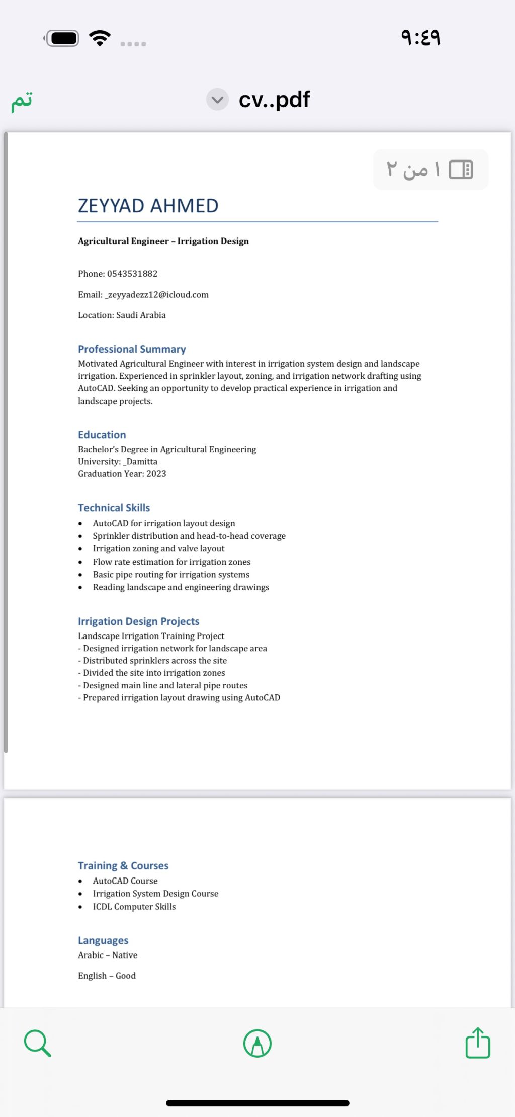 مهندس شبكات ري لاند سكيب خريج كلية الزراعة قسم الهندسة الزراعية سنة التخرج 2023 ابحث عن فرصة عمل أجيد رسم شبكات الري علي برنامج الأوتو كاد وتقسيم المساحة الى زونز وحساب تصرف كل زون واختيار المحبس المناسب وعمل حصر كميات للتصميم