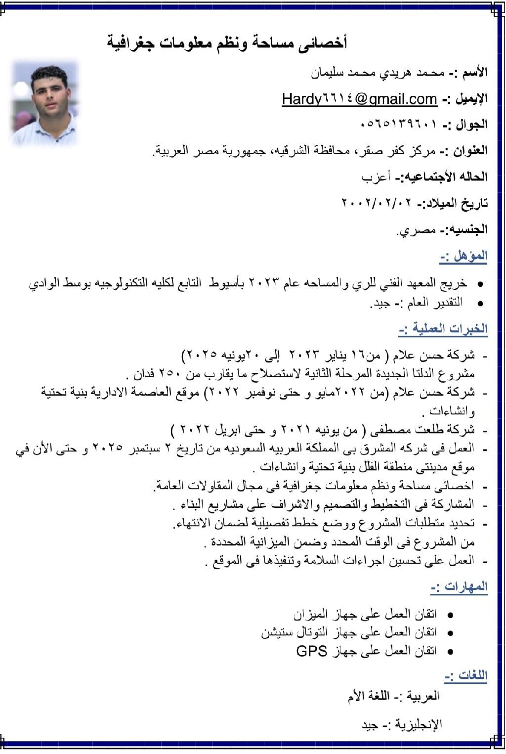 أنا مساح أجيد العمل على الاجهزة المساحية وخبرة أكثر من أربع سنوات في مشاريع البنيه التحتية والانشات ابحث عن فرصة عمل