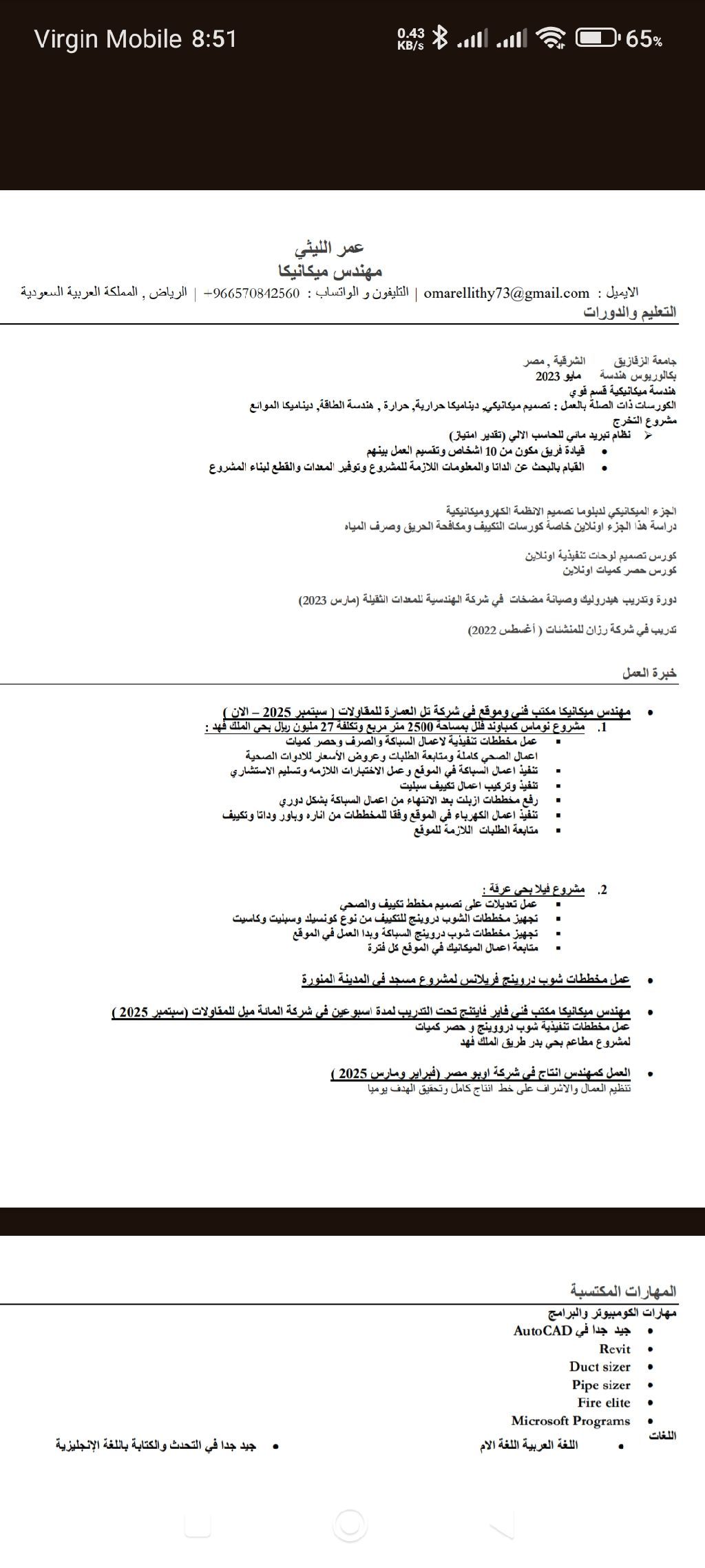 مهندس ميكانيكا خبرة 8 شهور في أعمال السباكه والتكييف موقع ومكتب فني وعمل مخططات الشوب دروينج ابحث عن فرصة عمل في أي من المجالات التكييف والفاير فايتنج والصحي