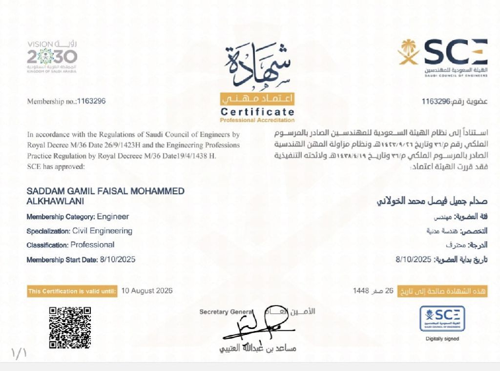 مهندس مدني بتصنيف محترف من الهيئة السعودية بخبرة 10 سنوات متخصص في التصميم والاشراف وإدارة المشاريع والتصميم الانشائي ببرامج CSI والاوتوكاد وقد صممت ونفذت العديد من المشاريع المتنوعه فلل سكنية ومباني تجارية متعددة الطوابق وأفكار صعبة، إدارة المشاريع خبرة في إدارة الموارد، الجداول الزمنية، والميزانيات لضمان تسليم المشاريع في موعدها. وأدرك تماما كيف أحقق التوازن الصعب بين الجودة، التكلفة، والوقت