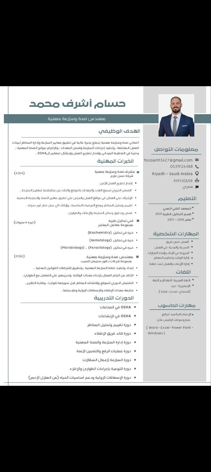 ابحث عن فرصة عمل ك مهندس سلامة أو مشرف خبرة في المجال 6 سنوات وحصل على شهادة دوليه