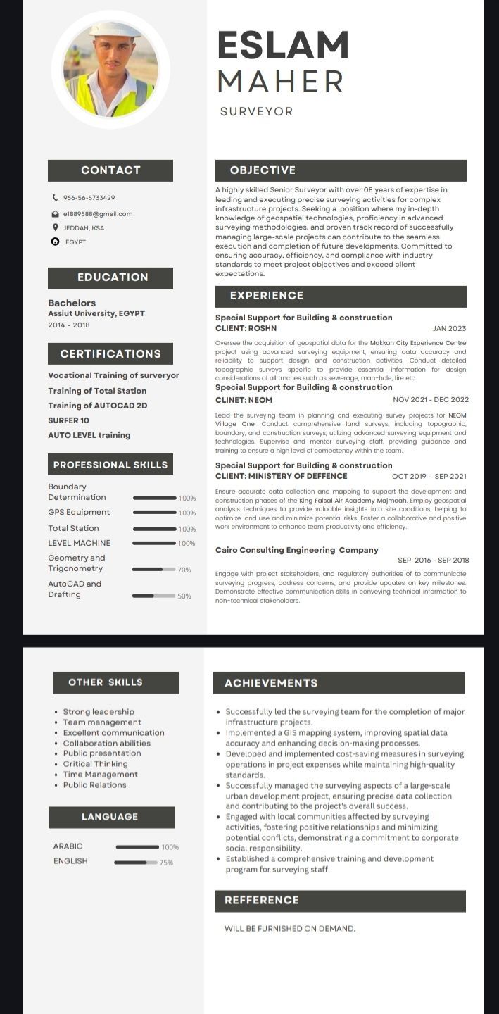 مساح يبحث عن عمل خبرة أكثر من 8 سنين