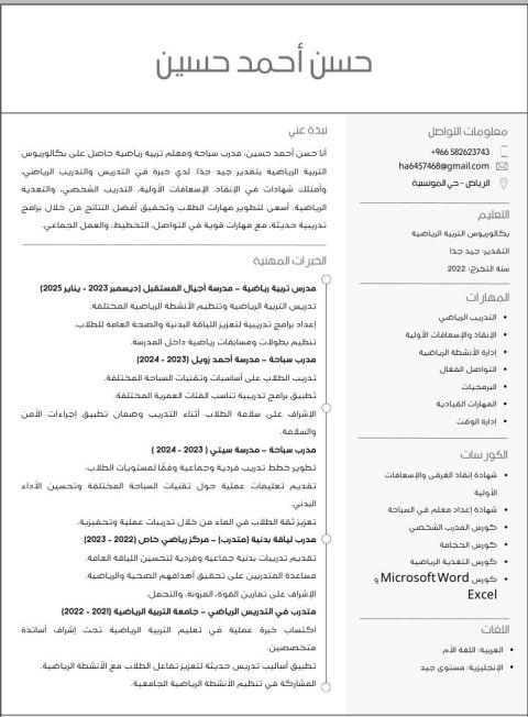 مدرب لياقة بدنية وفنون الدفاع عن النفس (مغربي الجنسية) حاصل على حزام أسود ودبلوم مدرب لياقة بدنية معتمد حاصل على عدة شواهد ودورات في اللياقة البدنية وفنون الدفاع عن النفس، خبرة 8 سنوات تدريب في المملكة العربية السعودية المهنة في الإقامة (مدرب لياقة)
