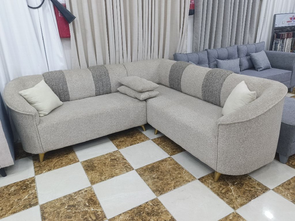 موديل حرف L بتصميم عصري وأنيق المقاس 220*220 سم، الارتفاع 85 سم قماش شنيل فاخر بملمس ناعم اسفنج سوفت سماكة 10 سم لراحة ممتازة خيار مثالي للراحة والأناقة معرضنا في محايل عسير، طريق الحزام