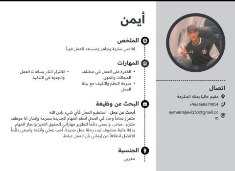 ابحث عن عمل أنا رجل محترم وأخلاقي وأحب التعامل مع الآخرين بكل احترام وتقدير ومودة