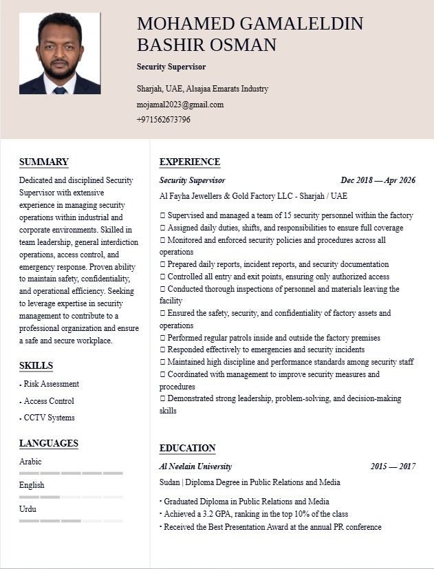 ابحث عن فرصة عمل حارس أمن أو موظف استقبال أو أمين مخزن خبرة 6 أعوام حاليا متواجد ومقيم في الامارات الشارقة