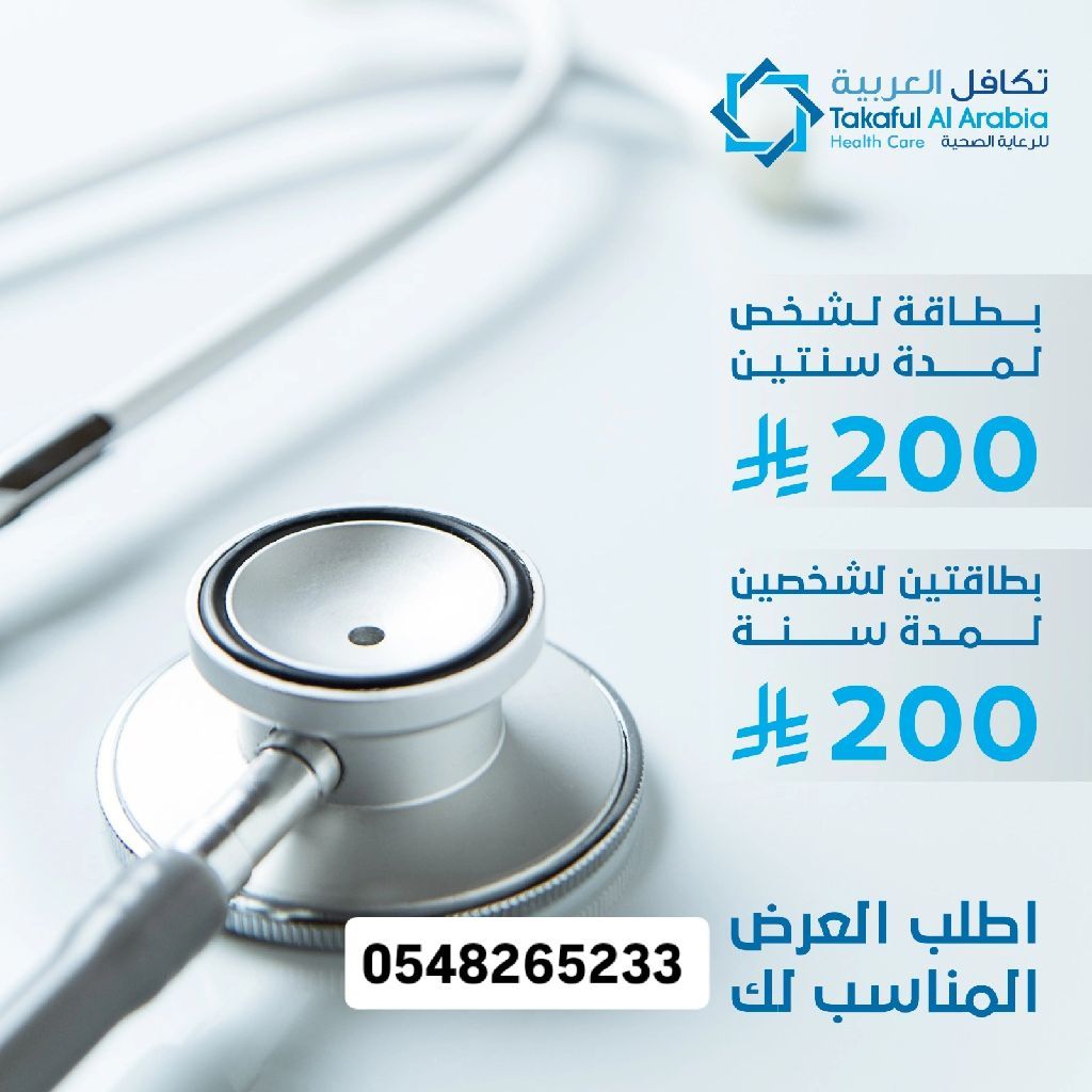 لماذا على الزائر والمقيم والمواطن أن يقتني بطاقة تكافل العربية تفيدة بخصومات في جميع التخصصات الطبية الكشوفات والتحاليل والأشعة والأسنان والجلدية والليزر والنظارات والعمليات والصيدليات وغيرها تشمل 3500 منشأة طبية حول المملكة يتم الربط عبر رقم الحدود أو رقم الجواز من مميزاتها لا يوجد حد ائتماني للعلاج الخصم مفتوح الخصم مباشرة بدون انتظار الموافقة سعرها رمزي 200 مدة سنة مع التوصيل