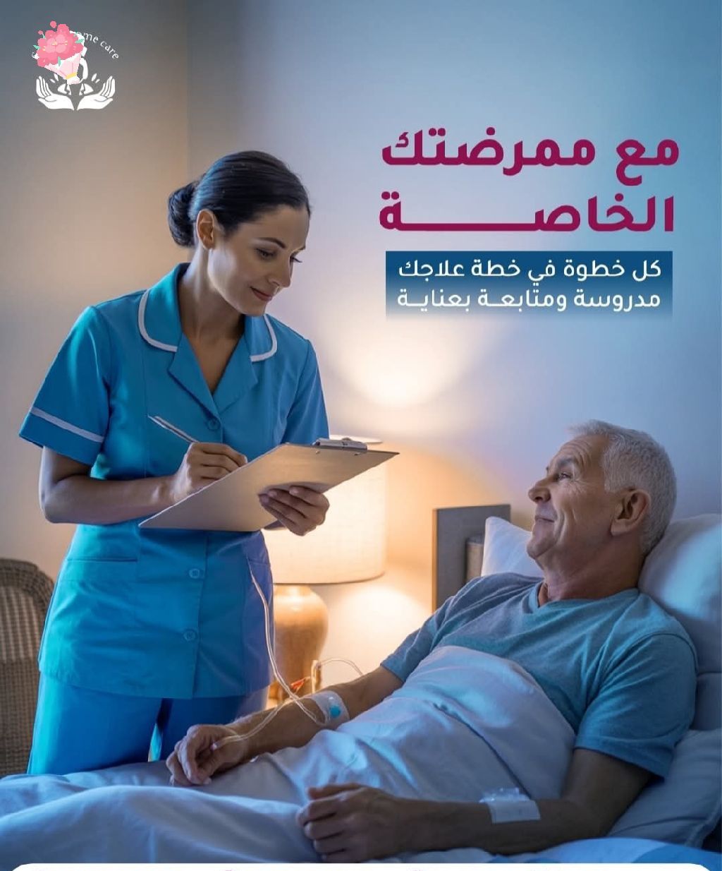 لراحة أحبائكم في منزلهم وبأيدي أمينة نوفر لكم فريقا متخصصا من الممرضين والممرضات ومرافقين ومرافقات بشهر المؤهلين لرعاية كبار السن وذوي الاحتياجات الخاصة في المنزل، مع التزام تام بتقديم رعاية صحية وانسانية تليق بأحبا بكم وتضمن راحتهم. مزايا خدمتنا رعاية طبية منزلية شاملة متابعة صحية، تقديم الادوية، والعناية اليومية بما يلبي احتياجاتهم. راحة نفسية فريق مدرب للتعامل بلطف واهتمام