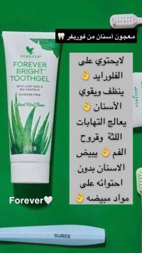 معجون أسنان فورايفر برايت للصغار والكبار الحائز على جائزة أفضل معجون أسنان في الولايات المتحدة الأمريكية آمن للكبار والصغار بسبب خلوه من الفلور ايد يحتوي على الصبار الطبيعي مع عكبر النحل أفضل معقم طبيعي مع نبتة النعناع ينظف ويطهر الفم والأسنان مفيد جدا لأمراض اللثة ورائحة الفم المزعجة يبيض الأسنان طبيعيا لخلوه من الحبيبات الخادشة للمينا ويخلص من الجير الأصفر في مدة ثلاثة أسابيع