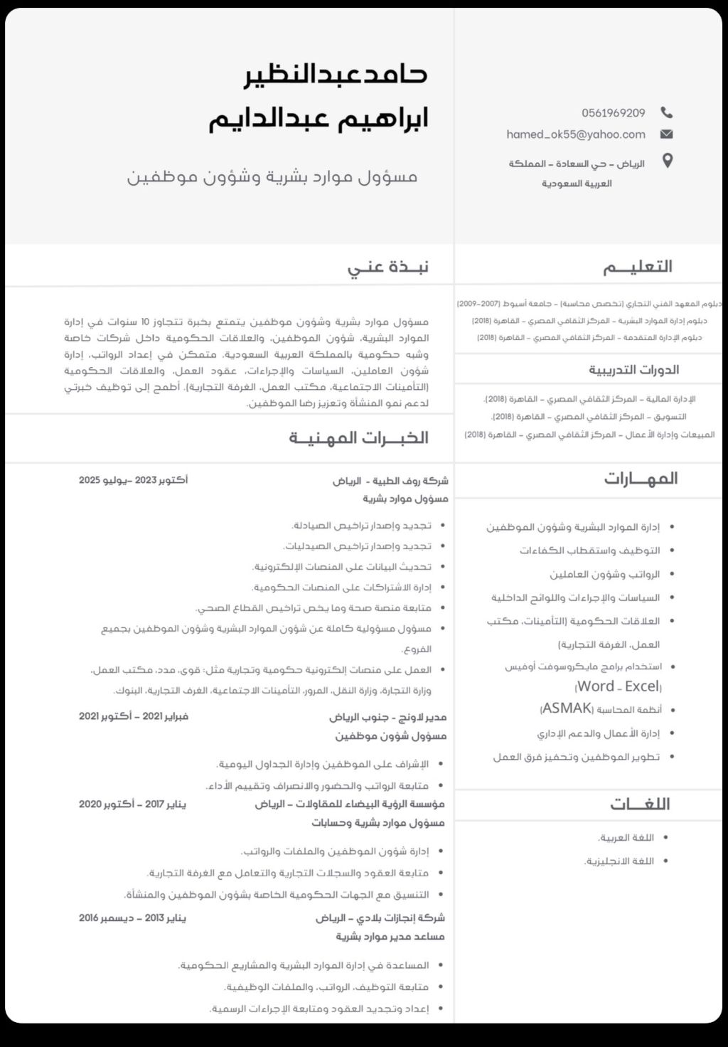 موظف موارد بشرية خبرة فوق 8 سنوات جميع المنصات الحكوميه وما يخص الموارد البشرية