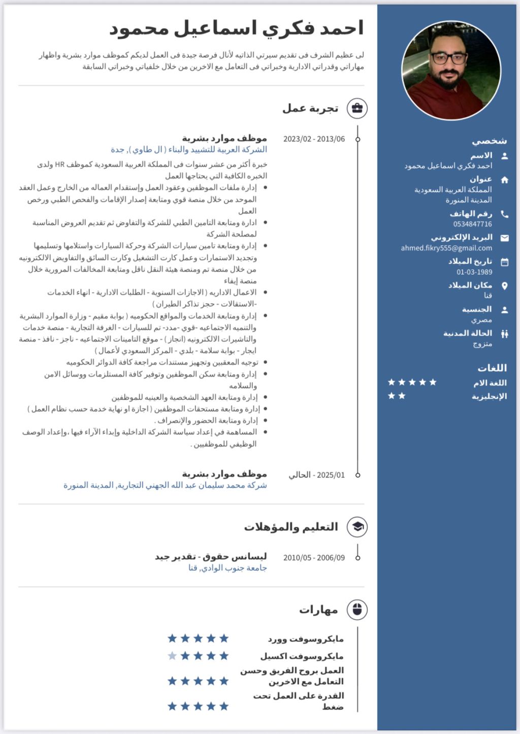 أخصائي موارد بشرية، خبرة 11 سنوات فيما يخص الموارد البشرية مصري الجنسية