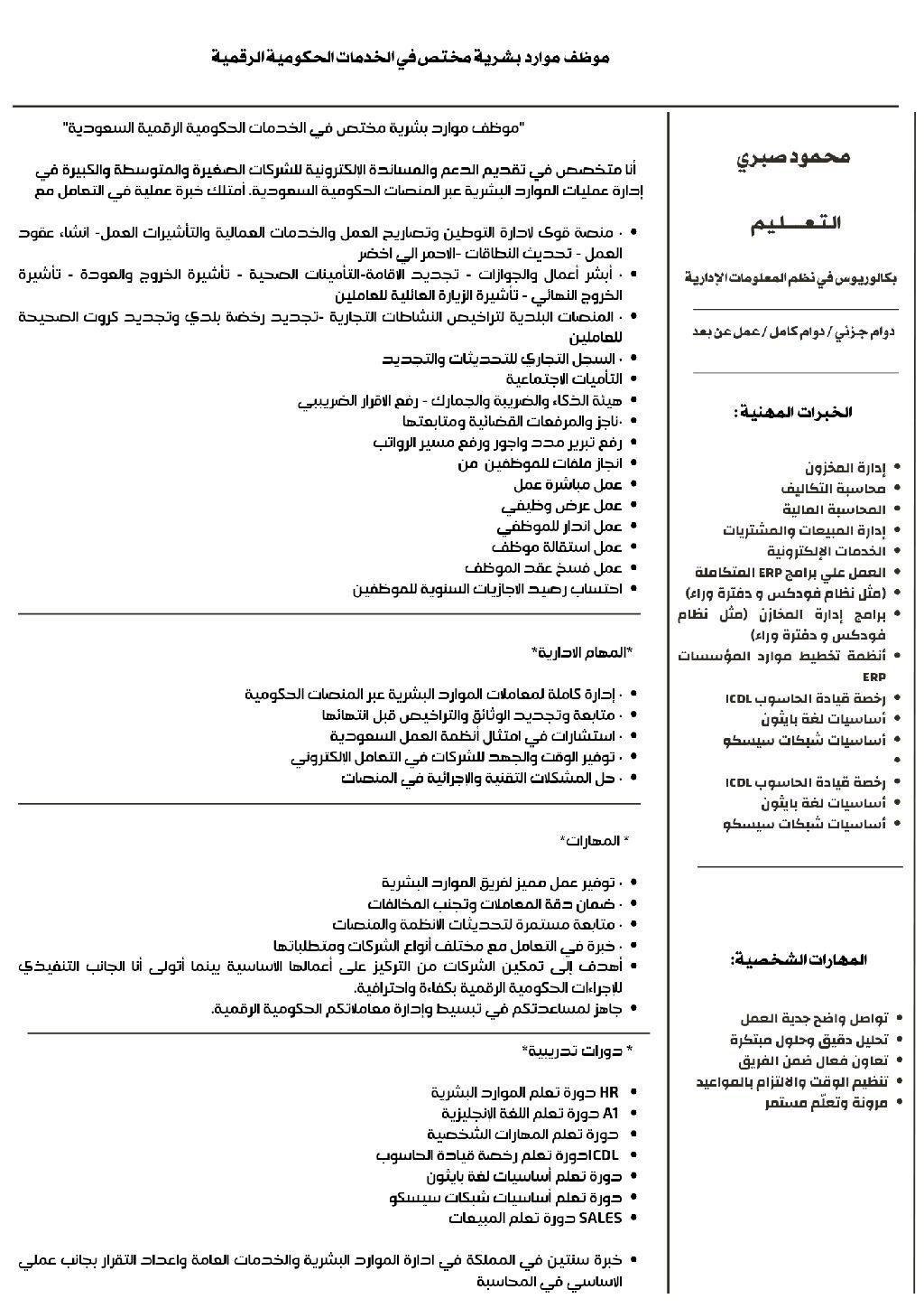 في خدمتكم موظف الموارد البشرية انجاز الخدمات للمؤسسات والشركات والخدمات الموظفين والخدمات الالكترونية وخدمات الجامعات / عمل عن بعد / ودوام جزئي / دوام كامل