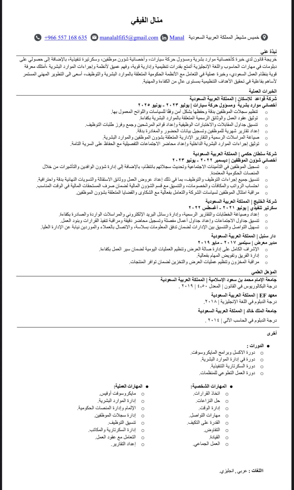 أخصائية موارد بشرية سعوديه ابحث عن عمل في خميس مشيط خبرة 4 سنوات في الموارد البشرية والرواتب وجميع المنصات الحكوميه مدد، قوى، التأمينات مقيم خبرة ممتازة في الاكسل