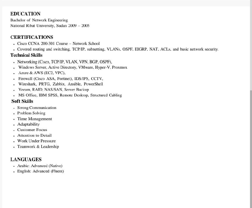 مهندس شبكات مقيم إقامة ورخصة ابحث عن وظيفة شاغرة