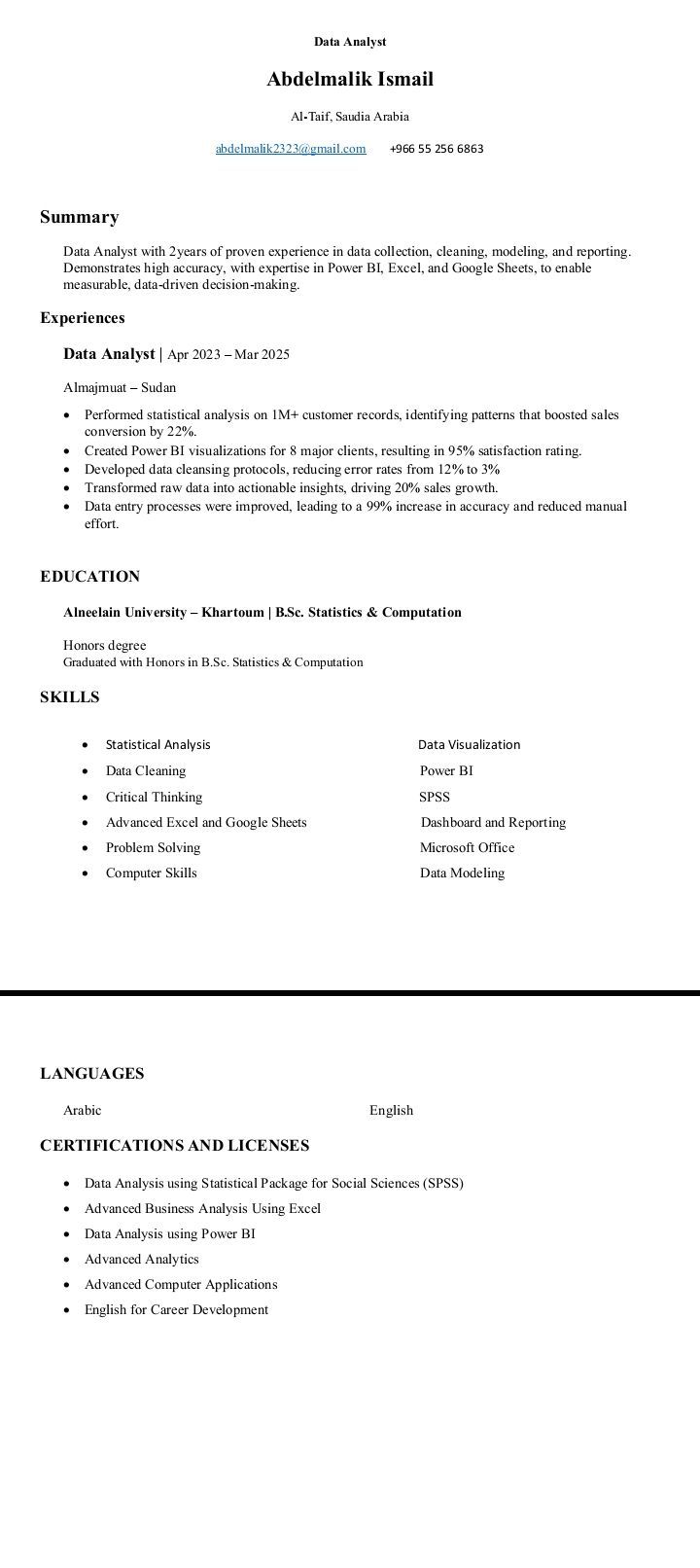 محلل بيانات سوداني خبير جمع البيانات، وتنظيفها، وتحليلها وعمل الداشبورت واعداد التقارير باحتراف، ليجعل أصحاب المصلحة في اتخاذ القرار بشكل أسرع وسليم. وأجيد التعامل مع اجهزة الحاسوب، ابحث عن عمل في الوظيفة أعلاه أو في أي وظيفة ذات صلة