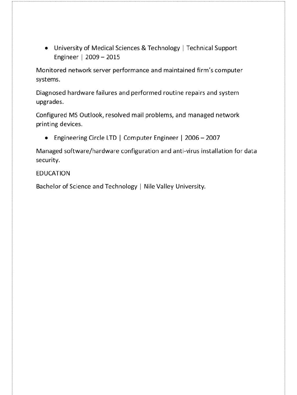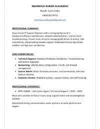 IT support Engineer with 7 years of experience in technical support and network management. Networking LAN, Wireless, TCP/ IP, and Firewall configuration. Technical Support Hardware/ Software maintenance, MS Outlook, and Network Printers. Systems User management and Data Backup