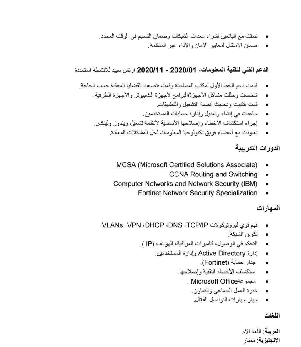 An IT and Network Engineer with experience in designing, implementing, secure network infrastructures. Skilled in working with LAN and WAN networks. Strong problem - solver with the ability to troubleshoot network and IT issues. Experienced with Fortinet firewalls, as well as Cisco, Ruijie, and Hikvision switches, low - current systems such as CCTV cameras, biometric devices, and IP phones