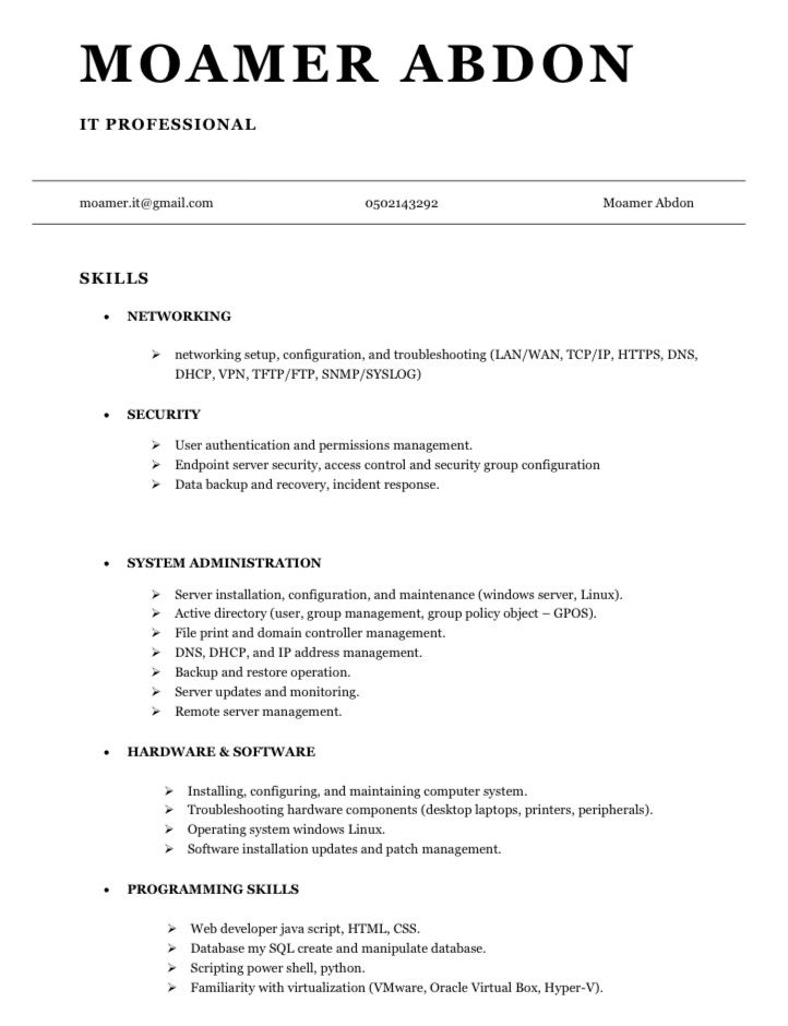Moamer from Sudan granted a Master degree in Computer Science and IT professional courses such as Cisco CCNA, MS MCSA, Linux Redhat, compTIA Security + knowledge about scripting C Js